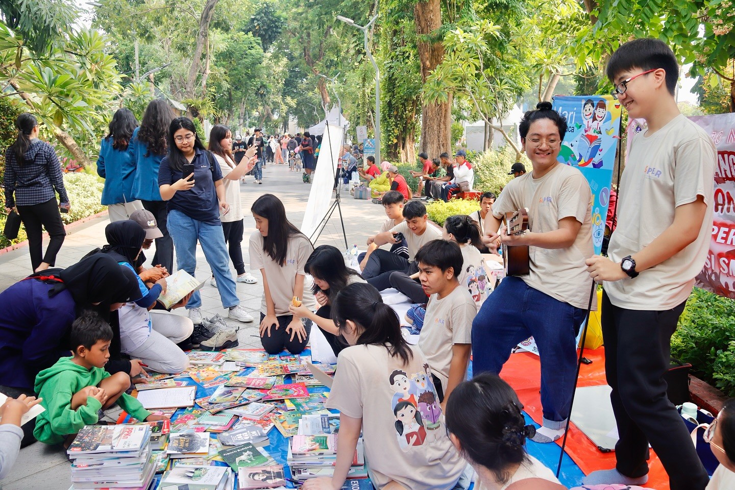 Layanan Perpustakaan Keliling Thomas Aquino St. Louis 1 kembali digelar pada Minggu, 10 November 2024, di Taman Bungkul, Surabaya. Bertepatan dengan momen Hari Pahlawan, kali ini perpustakaan keliling Thomas Aquino St. Louis 1 berkolaborasi dengan Perpustakaan SMA Kr. Petra 2 Surabaya, membawa suasana yang lebih meriah dan beragam kegiatan edukatif.
