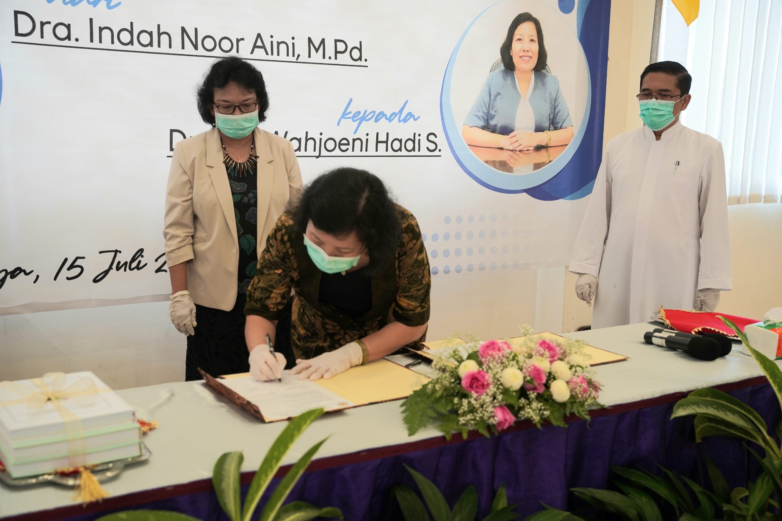 Pergantian Kepala SMA Katolik St. Louis 1 seara resmi dilakukan melalui Serah Terima Jabatan (SERTIJAB), pada Rabu (15/7) di Vincentius Hall, dari kepemimpinan Dra. Indah Noor Aini, M.Pd., kepada Dra. Sri Wahjoeni Hadi S. Hadir dalam acara ini selain Bapak/ Ibu guru perwakilan St. Louis 1, Kepala Sekolah dari unit dalam Yayasan Lazaris dan Romo pengurus yayasan. Penandatanganan dokumen SERTIJAB antara lain oleh kepala sekolah lama dan baru, Rm. Tetra Vici Ananta, CM., dan 2 (dua) saksi dari SMKK St. Louis dan SDK St. Aloysius Surabaya.