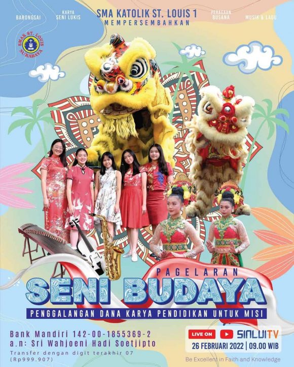 On Saturday, the 26th of February, St. Louis Catholic High School 1 held a pagelaran Seni Budaya – an Art and Culture Festival – to fundraise for education. The pagelaran was held at 09.00 AM, Western Indonesian Time, at Sinlui TV’s youtube channel. The process was done with strict health protocols. Those wishing to donate can do so through Mandiri Bank to the account of Sri Wahjoeni Hadi Soetjipto, 142-00-1855369-2, with a unique last digit 07, example Rp. 999.007,00.