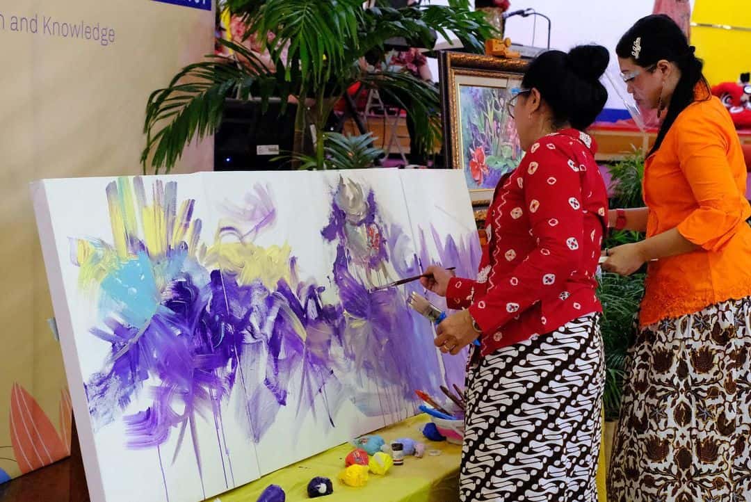 During the pagelaran, there were various exhibitions of culture. First, there was a Chinese Barongsai dance. Next, there was live painting and a display of traditional dress. There was also music and dancing themed around a fusion of two cultures. A particular highlight was the live painting session, which was done by two art teachers from St. Louis Catholic High School, Paulina Soesri Handajani and Lies Oktavia. They created four paintings live, which were then auctioned off to raise money for education. The auction will end on the 13th of March.